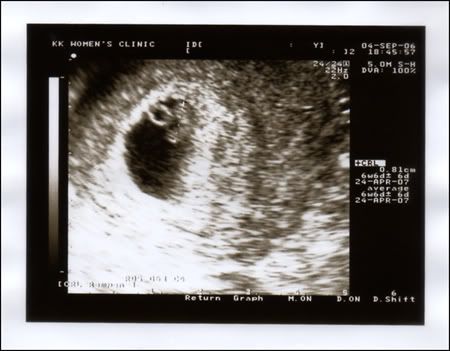 U guys dunno how much i wanted to shout out abt the news earlier.. but i tot i should wait till the babe's more stable... coz when we first went to see the gynae at supposedly 6-7wks, the gynae couldn't see the babe in the gestational sac... we were told to see him again a wk later to see how it was progressing and i'm telling ya, it was the longest 1wk wait ever!!!